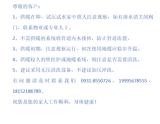 供暖季来临,卓雅舒适家温馨提醒!